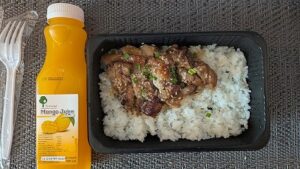 今回はお店の人にも「辛くない?」と確認して鶏の照り焼き弁当のようなものを購入。